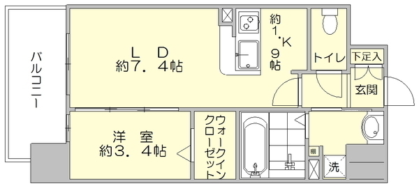 LDK 7.4帖 、K 1.9帖 、洋 3.4帖