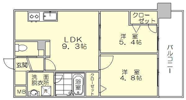 洋 4.8帖 、洋 5.4帖 、LDK 9.3帖