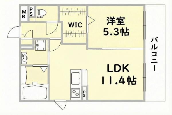 カウンターキッチン付1LDK