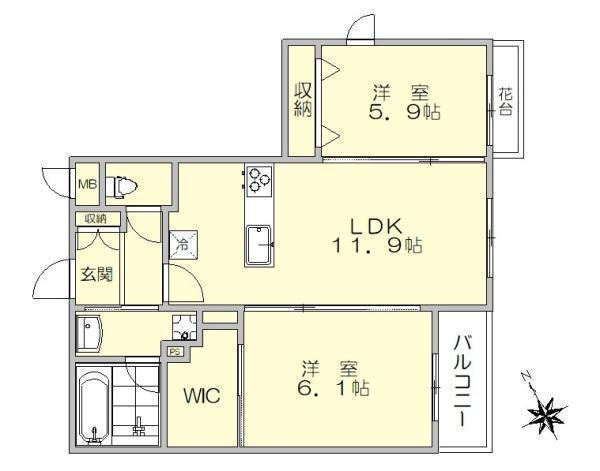 LDK 11.9帖 、洋 5.9帖 、洋 6.1帖