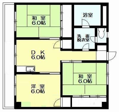 3DK 全室6帖以上でゆとりのある間取り
